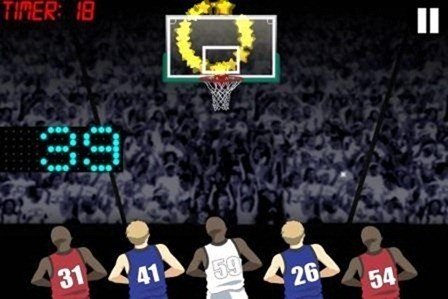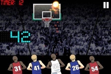The game starts off with 5 basketball players waiting to shoot into a moving overhead basket. You have to simply tap the players to shoot the ball into the moving overhead basket. Each shot gives you points, but as you progress through the game, the balls change into fiery ones giving you additional points when you basket them.